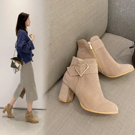 Belle Étoile Nice™ | Bottines Suédées à Talon Bloc et Détail Cœur