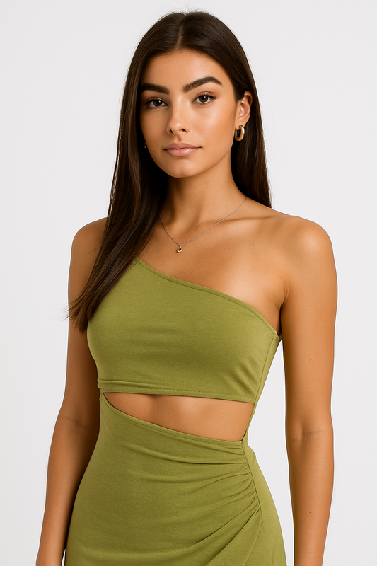 Belle Étoile Nice™ | Bandeau en satin soyeux avec découpe élégante et jupe fendue taille haute.