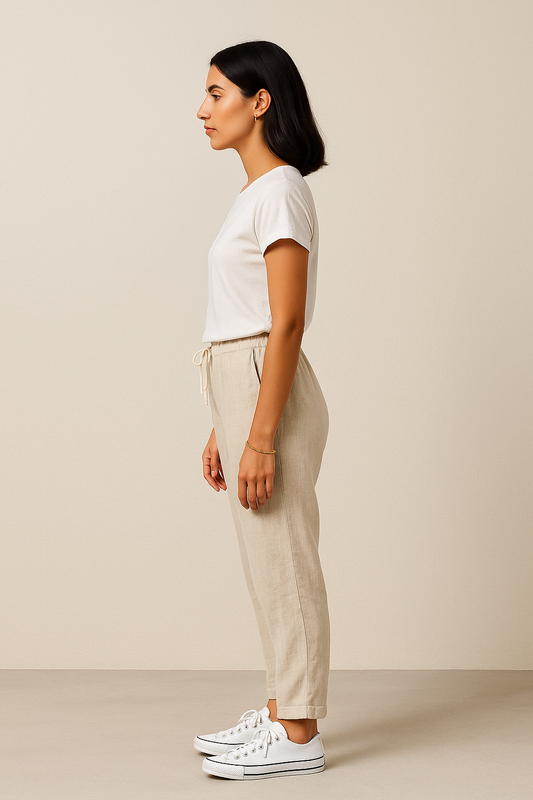 Belle Étoile Nice™ | Pantalon automnal coton – taille élastique & cordon, casual chic