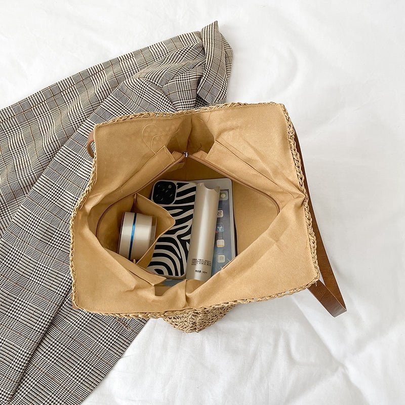 Que vous cherchiez un sac fourre-tout pratique pour vos courses du week-end ou un sac à main élégant pour vos soirées d'été, notre sac en paille tressée est l'accessoire indispensable pour toutes les femmes qui cherchent à ajouter une touche bohème à leur look. Commandez dès maintenant et profitez de l'été avec style !