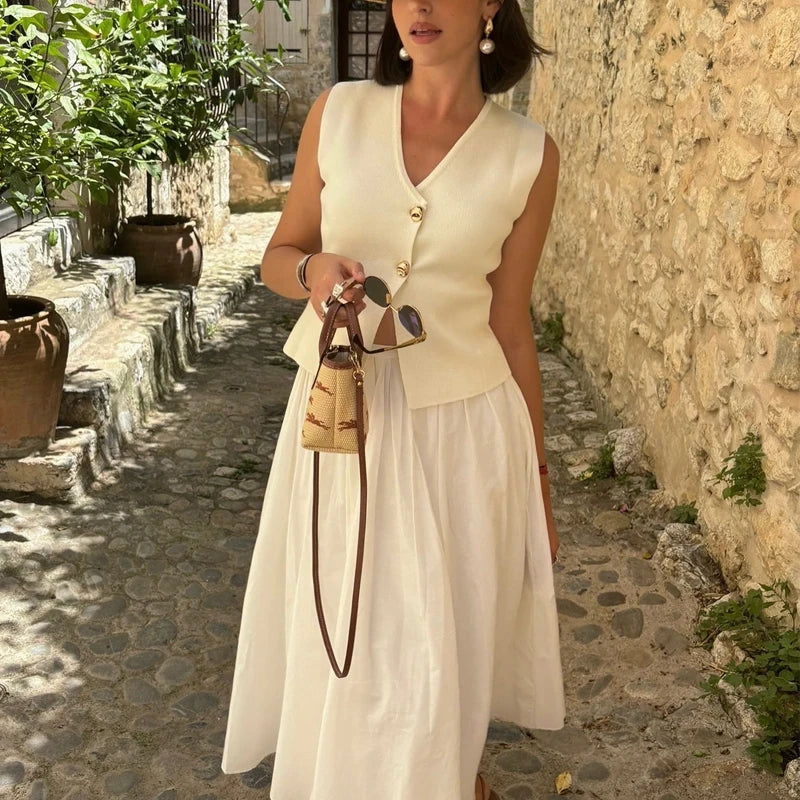 Belle Étoile Nice™ | Gilet court sans manches en maille – crop top boutonné, automne