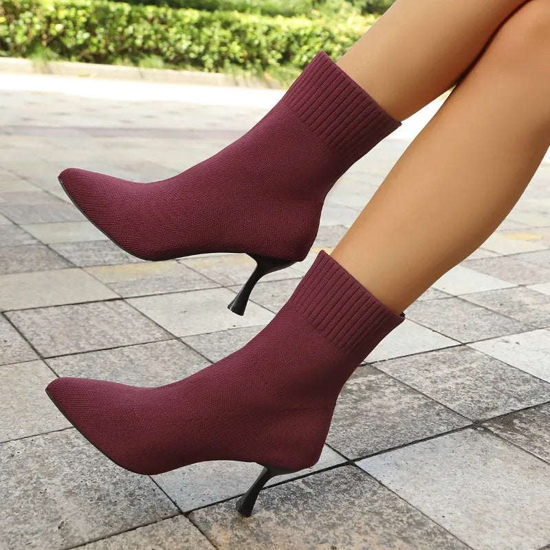 Belle Étoile Nice™ | Bottines Chaussettes Femme à Talons Aiguilles et Bout Pointu